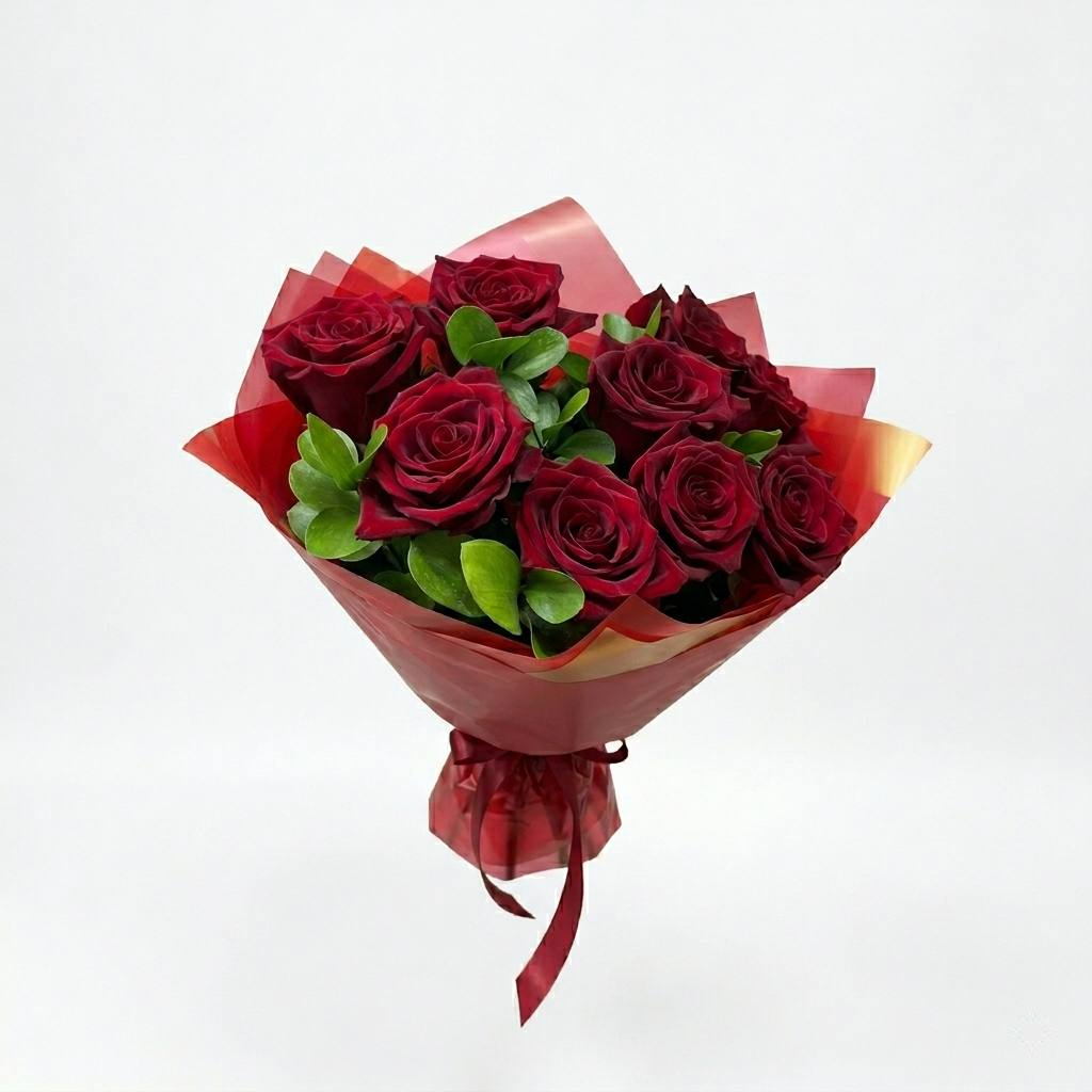 Букет с красными розами и рускусом